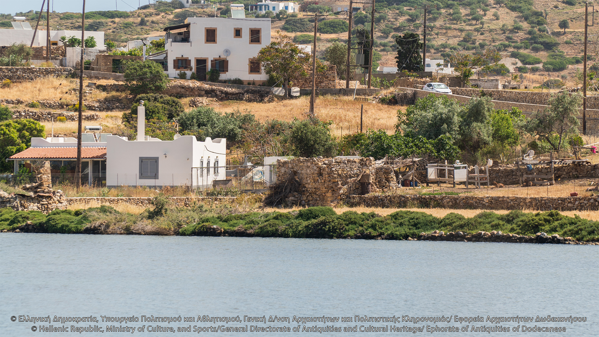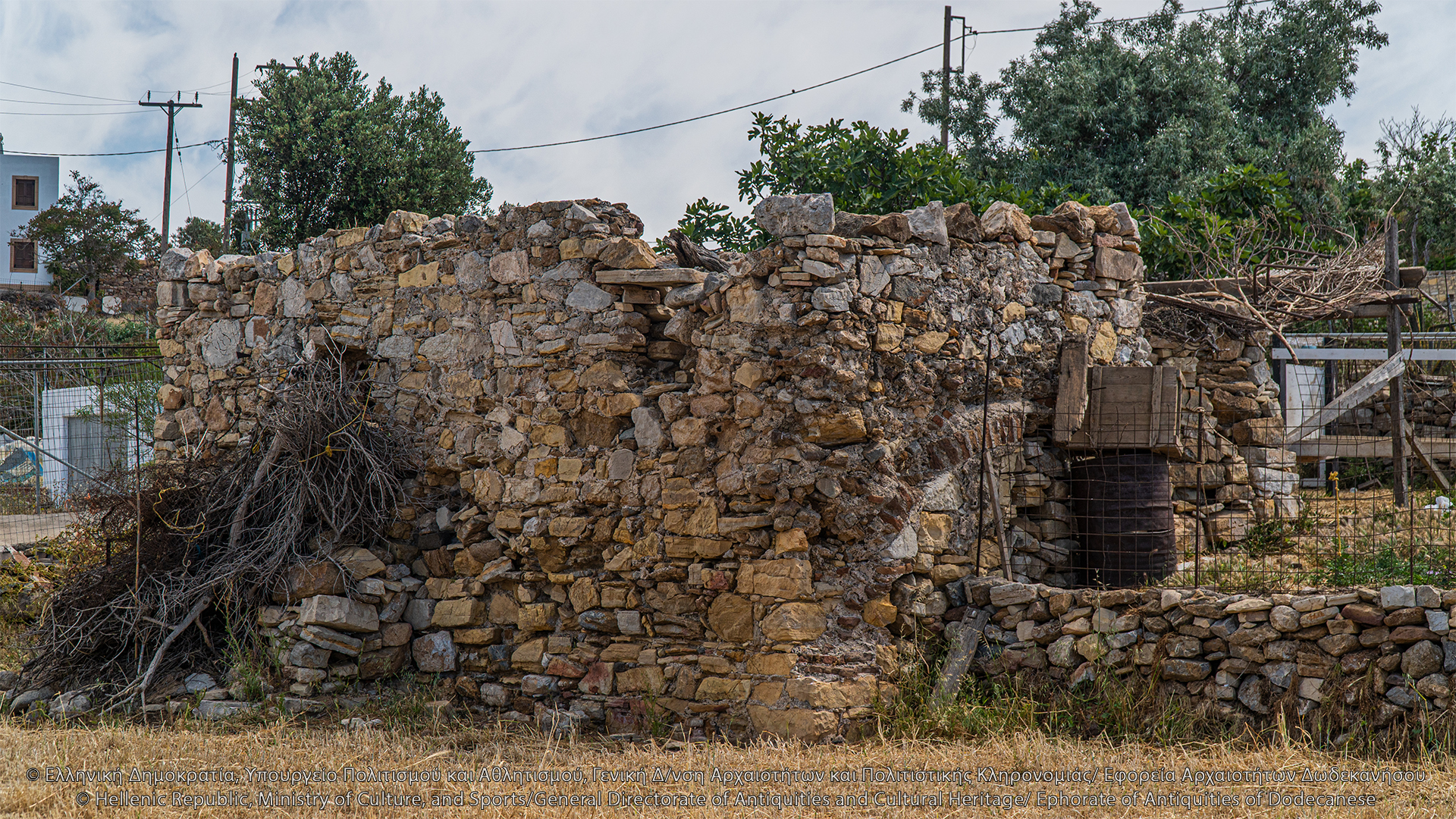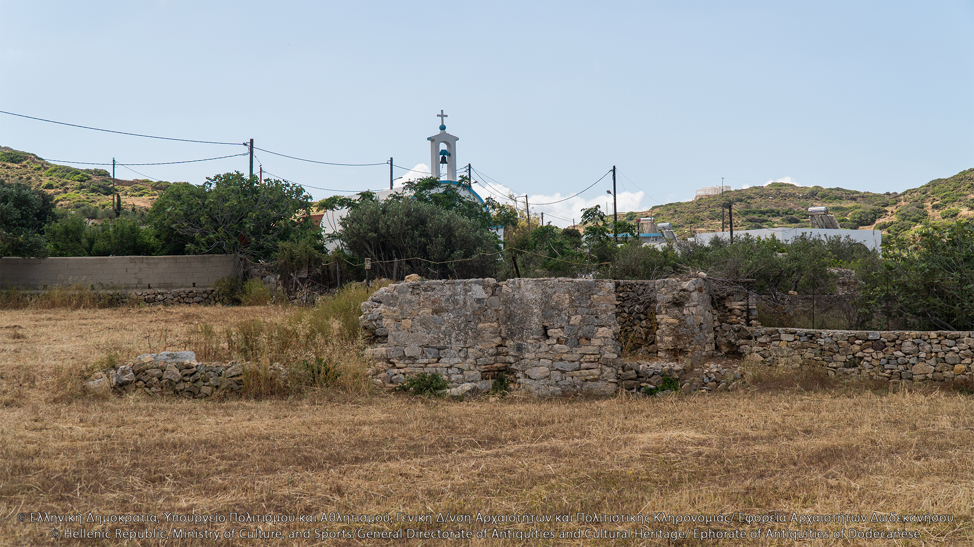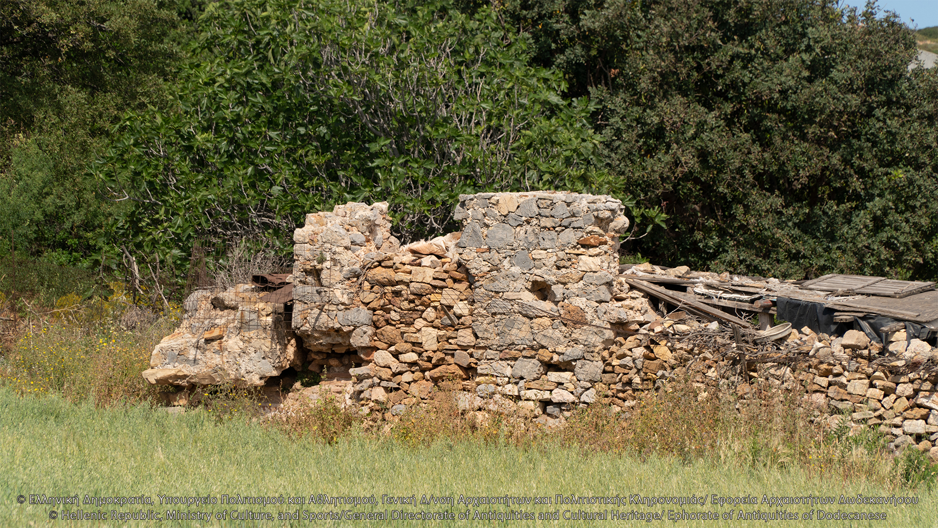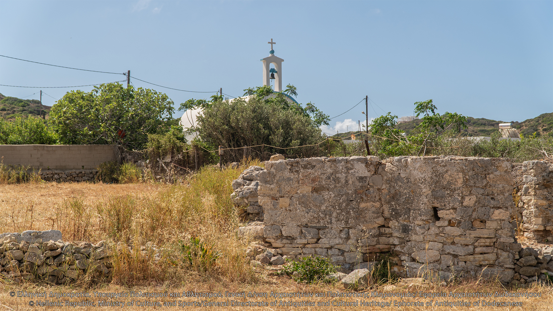 Σε μικρή απόσταση νοτιότερα του οικισμού, δεξιά του δρόμου που κατηφορίζει προς το Κουσέλιο, πριν από το εκκλησάκι της Παναγιάς (Εισόδια της Θεοτόκου) εντοπίζονται λείψανα αρχαίων κτισμάτων. Μέσα σε καλλιεργημένο αγρό και ελάχιστα μέτρα από την ακτή, σώζονται ένας τοίχος από ορθογώνιας κάτοψης αρχαίο κτίσμα, το οποίο έχει δεχθεί μετασκευές. Ανατολικά αυτού, σώζεται σχεδόν ακέραιο και σε όλο του σχεδόν το ύψος, άλλο ένα κτήριο τετράγωνης σχεδόν κάτοψης. Σε αυτό διακρίνεται καλύτερα η επιμελημένη τοιχοποιία, η χρήση κεραμικών στους αρμούς, τα αυθεντικά κονιάματα καθώς και σειρά κεράμων στα ανακουφιστικά τόξα. Ανατολικά, εντός του ίδιου αγρού, εντοπίζεται το τετράκογχο βαπτιστήριο της όμορης παλαιοχριστιανικής βασιλικής του Κουσέλιου, καθώς και θολωτή κατασκευή, καταχωσμένη στο μεγαλύτερο ύψος της.