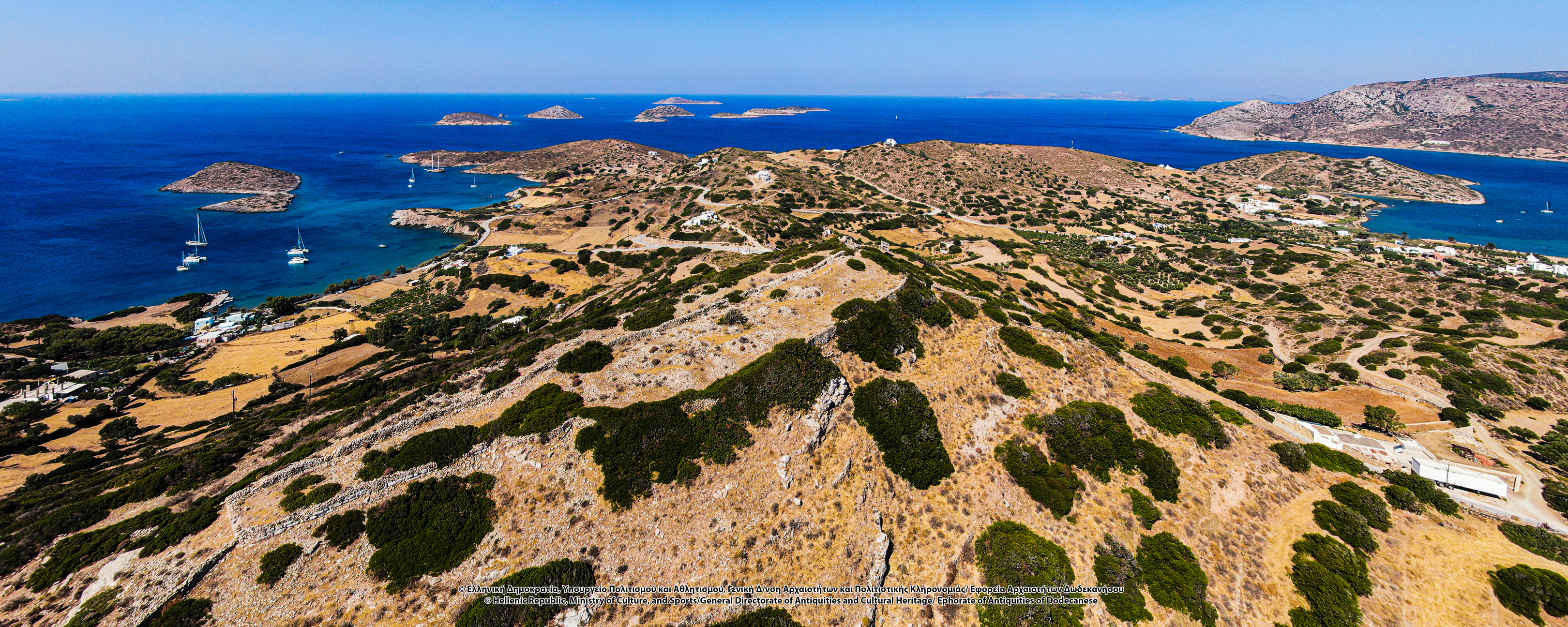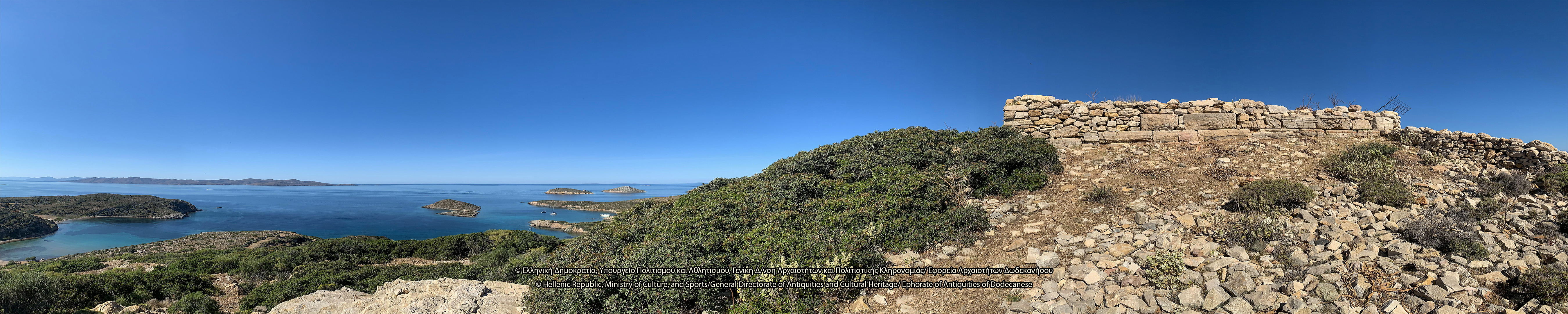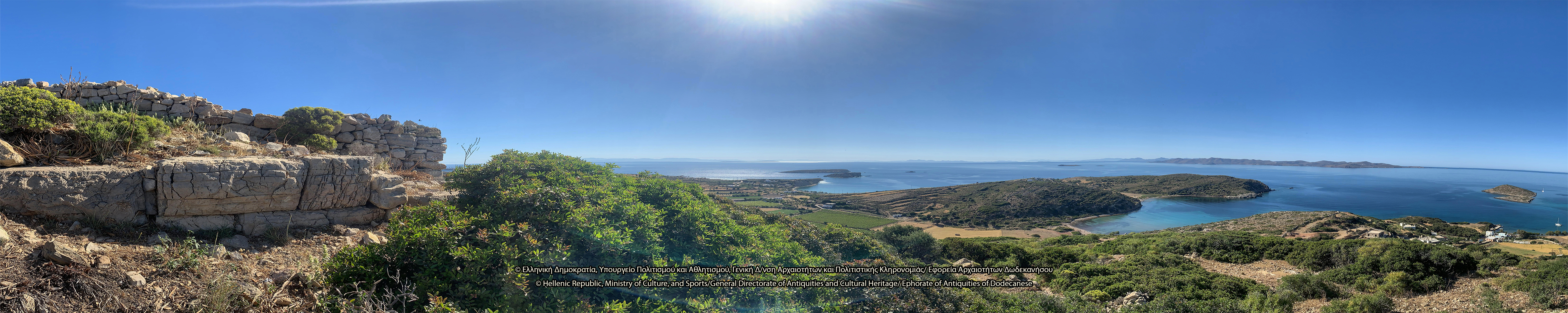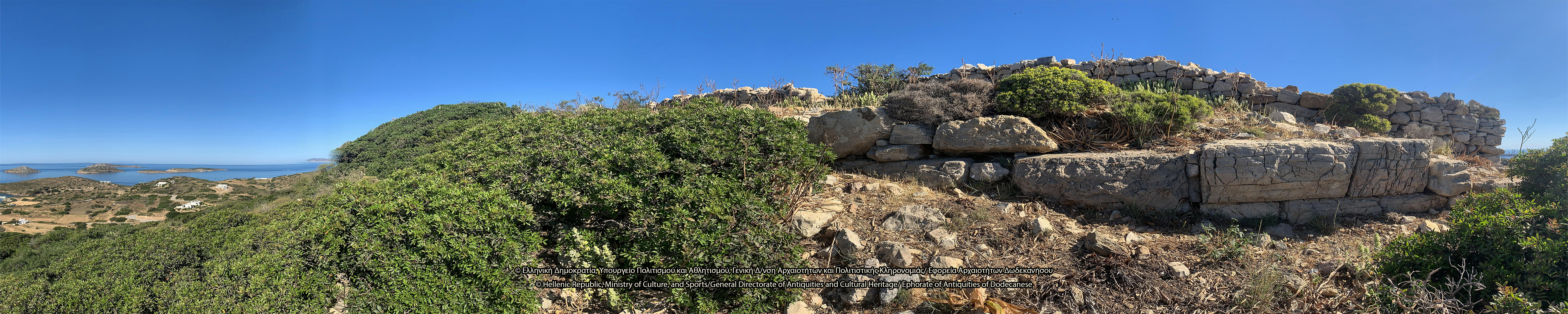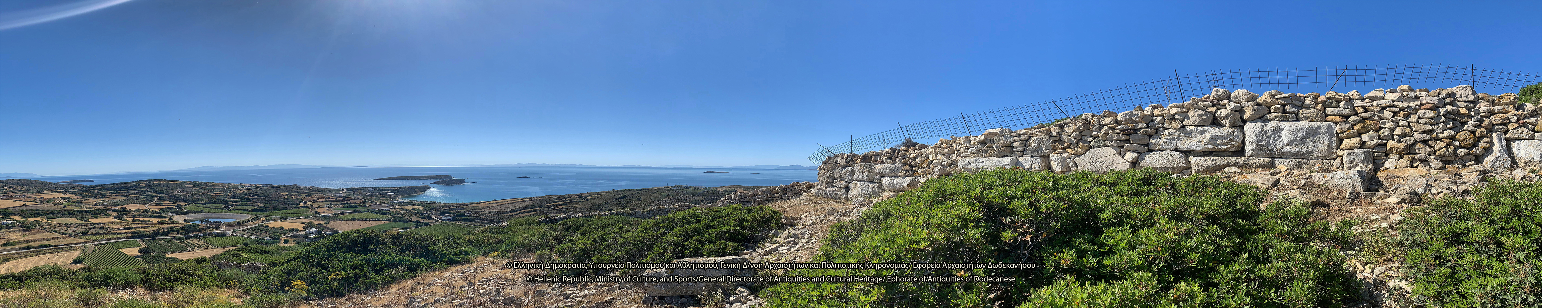 Στον λόφο του Κάστρου, νοτιοανατολικά του Ταρσανά, σώζονται λείψανα ελληνιστικής οχύρωσης. Πρόκειται για την ακρόπολη του νησιού, θέση οχυρή που ελέγχει το λιμάνι, τον όρμο της Κατσαδιάς και άλλους ορμίσκους προς τα δυτικά και κυρίως τις θαλάσσιες διελεύσεις, και αντικρίζει την Πάτμο. Στην κορυφή του λόφου, ύψους περίπου 107 μ., διαμορφώνεται πλάτωμα επίμηκες, στο οποίο διατηρούνται λείψανα αρχαίων κτισμάτων και οχυρωματικού περιβόλου. Το τείχος διατηρείται σε αρκετή έκταση και τμήματά του είναι ορατά κυρίως στην ανατολική του πλευρά, όπου διαμορφώνεται πύλη. Λείψανα επίσης είναι ορατά στη νότια πλευρά της οχύρωσης, όπου δημιουργείται ορθογώνιος πύργος με εσωτερικές διαστάσεις 8Χ5 μ. Στα τοιχώματά του, πλάτους 1 μ., έχουν χρησιμοποιηθεί ορθογώνιοι λιθόπλινθοι, ενώ σε ορισμένα σημεία υπάρχουν λίθοι αμελέστερης επεξεργασίας και ακανόνιστου σχήματος. Η βόρεια πλευρά του τείχους κάμπτεται προς τα δυτικά και διακρίνεται σε μήκος 7 μ. Εντός του περιβόλου, στα νοτιοδυτικά, σώζονται λείψανα αρχαίου ορθογώνιου κτίσματος. Στο εσωτερικό της ακρόπολης διακρίνονται λιθόπλινθοι, ξερολιθιές και πωρόπλινθοι, διάσπαρτη επιφανειακή κεραμεική από την αρχαϊκή περίοδο έως την ύστερη αρχαιότητα, καθώς και πήλινες κεραμίδες. Το 1957 οι αρχαιολόγοι George Ewart Bean και John Manuel Cook εντόπισαν στην ακρόπολη ελληνιστικό χάλκινο νόμισμα της Μιλήτου.