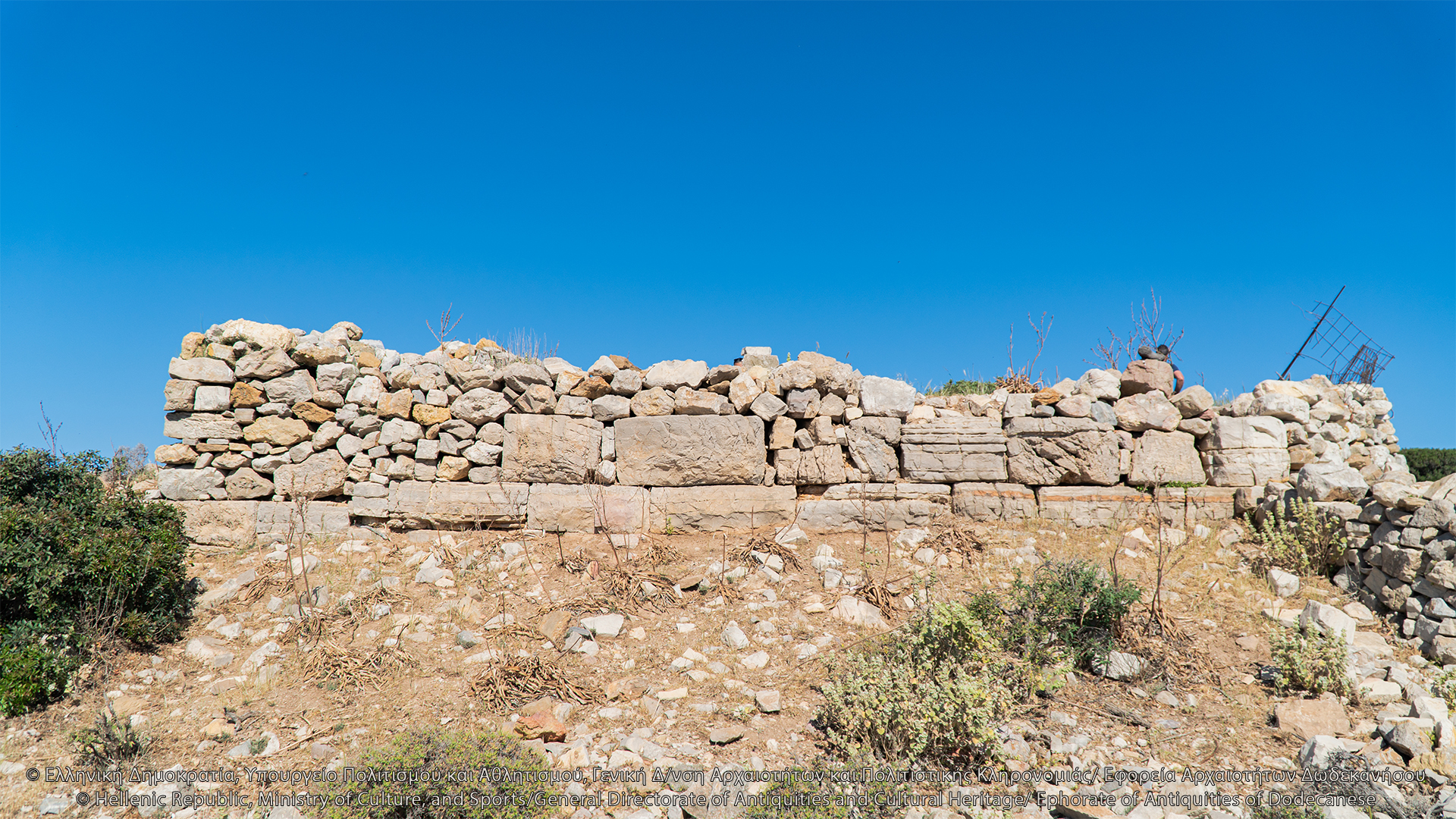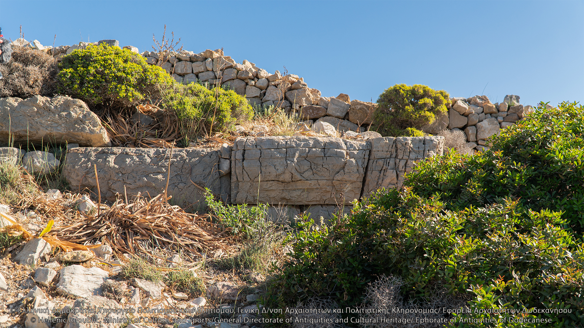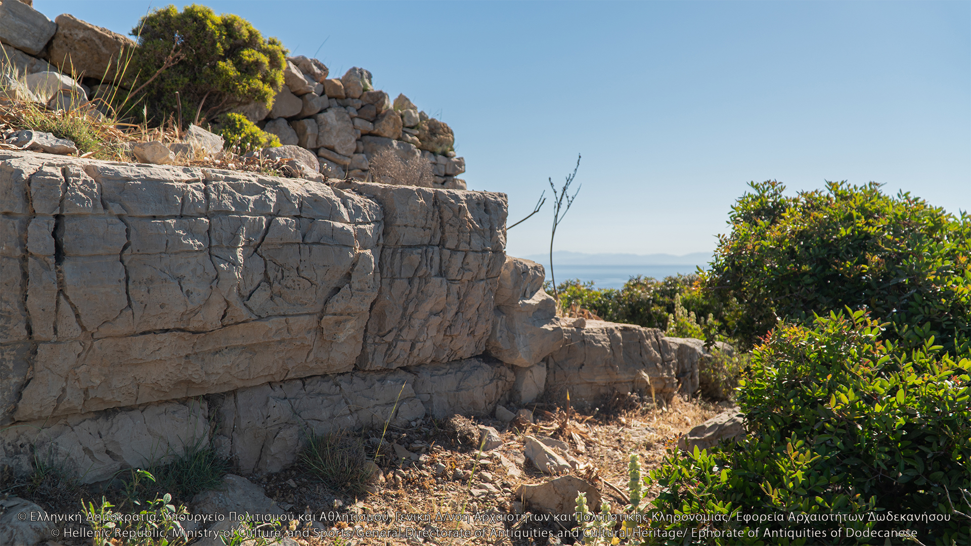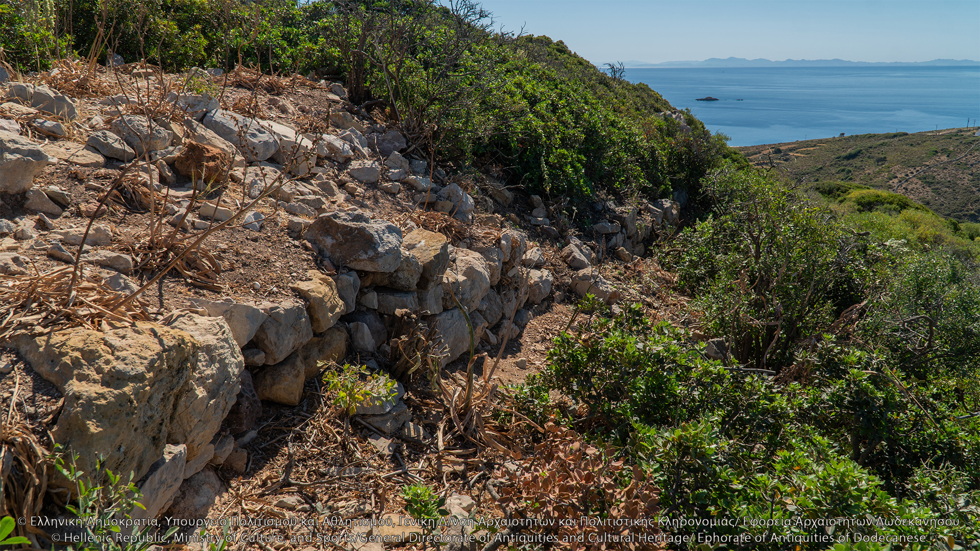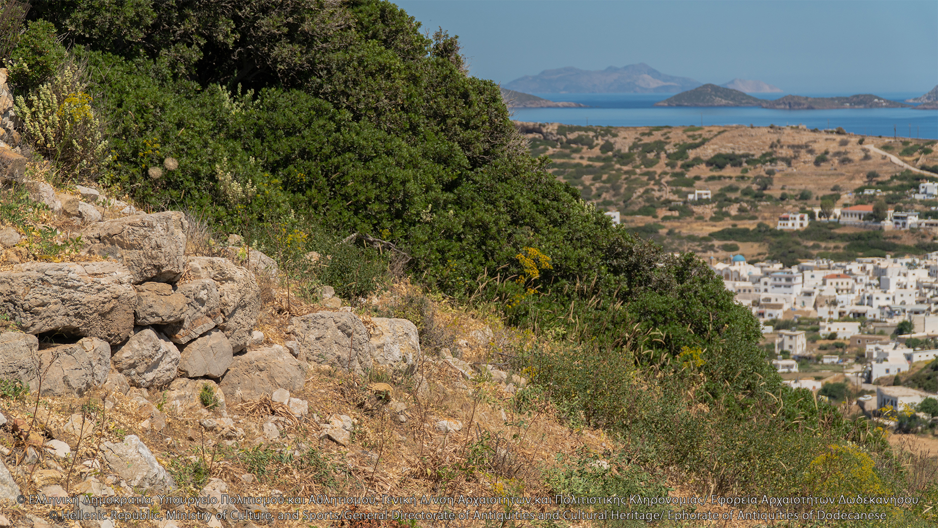 Στον λόφο του Κάστρου, νοτιοανατολικά του Ταρσανά, σώζονται λείψανα ελληνιστικής οχύρωσης. Πρόκειται για την ακρόπολη του νησιού, θέση οχυρή που ελέγχει το λιμάνι, τον όρμο της Κατσαδιάς και άλλους ορμίσκους προς τα δυτικά και κυρίως τις θαλάσσιες διελεύσεις, και αντικρίζει την Πάτμο. Στην κορυφή του λόφου, ύψους περίπου 107 μ., διαμορφώνεται πλάτωμα επίμηκες, στο οποίο διατηρούνται λείψανα αρχαίων κτισμάτων και οχυρωματικού περιβόλου. Το τείχος διατηρείται σε αρκετή έκταση και τμήματά του είναι ορατά κυρίως στην ανατολική του πλευρά, όπου διαμορφώνεται πύλη. Λείψανα επίσης είναι ορατά στη νότια πλευρά της οχύρωσης, όπου δημιουργείται ορθογώνιος πύργος με εσωτερικές διαστάσεις 8Χ5 μ. Στα τοιχώματά του, πλάτους 1 μ., έχουν χρησιμοποιηθεί ορθογώνιοι λιθόπλινθοι, ενώ σε ορισμένα σημεία υπάρχουν λίθοι αμελέστερης επεξεργασίας και ακανόνιστου σχήματος. Η βόρεια πλευρά του τείχους κάμπτεται προς τα δυτικά και διακρίνεται σε μήκος 7 μ. Εντός του περιβόλου, στα νοτιοδυτικά, σώζονται λείψανα αρχαίου ορθογώνιου κτίσματος. Στο εσωτερικό της ακρόπολης διακρίνονται λιθόπλινθοι, ξερολιθιές και πωρόπλινθοι, διάσπαρτη επιφανειακή κεραμεική από την αρχαϊκή περίοδο έως την ύστερη αρχαιότητα, καθώς και πήλινες κεραμίδες. Το 1957 οι αρχαιολόγοι George Ewart Bean και John Manuel Cook εντόπισαν στην ακρόπολη ελληνιστικό χάλκινο νόμισμα της Μιλήτου.